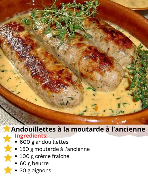 Les andouillettes à la moutarde à l’ancienne sont un plat emblématique de la cuisine française, qui allie la richesse de la charcuterie aux arômes puissants de la moutarde traditionnelle. Ce plat repose sur un équilibre entre la saveur prononcée de l’andouillette, la force aromatique des grains de moutarde et la douceur apportée par la crème, créant une sauce onctueuse et parfumée qui enveloppe chaque morceau. Il s’agit d’une préparation rustique, à la fois chaleureuse et conviviale, qui met en valeur la technique et le goût authentique des ingrédients.