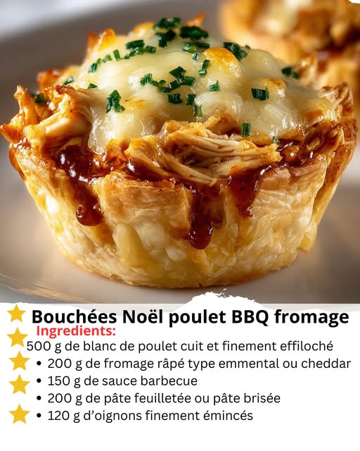 Les bouchées de Noël au poulet BBQ et fromage représentent une idée festive, gourmande et polyvalente pour les tables de fin d’année. Elles combinent le moelleux du poulet, la douceur légèrement sucrée de la sauce barbecue et le fondant irrésistible du fromage. Ces bouchées sont idéales pour les apéritifs, buffets ou soirées conviviales, car elles se dégustent facilement du bout des doigts. Leur préparation reste simple, mais la réussite repose sur un mélange équilibré, une pâte bien travaillée et une cuisson maîtrisée pour obtenir un résultat croustillant et généreux. Ce plat rassemble les saveurs réconfortantes de la cuisine américaine et l’esprit chaleureux des fêtes européennes. Cette recette détaillée propose une approche complète, des techniques de cuisson, des conseils d’assemblage et des astuces pour personnaliser les bouchées selon les préférences de chacun. À travers environ deux mille mots, ce texte offre une compréhension profonde de chaque étape, avec une élaboration culinaire qui permet d’obtenir des bouchées savoureuses, harmonieuses et parfaitement adaptées aux célébrations de Noël.