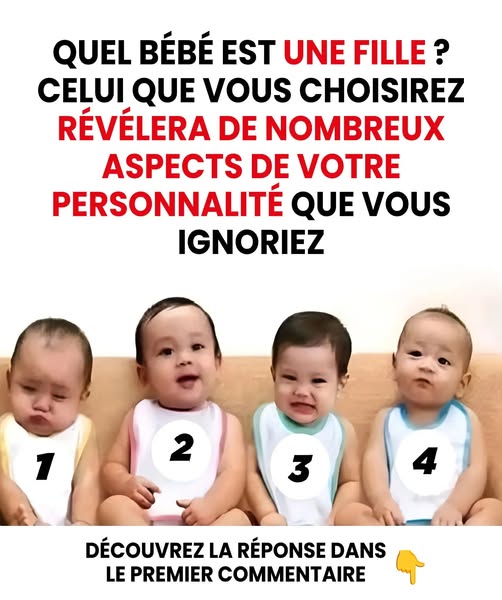 Vous tombez sur une image toute mignonne : quatre bébés côte à côte, numérotés de 1 à 4, et une question toute simple : « Quel bébé est une fille ? » Vous choisissez rapidement, presque sans réfléchir, juste “à l’instinct”. Et si ce choix en disait un peu plus sur votre façon d’être que vous ne l’imaginez ? Bien sûr, ce n’est pas un test scientifique, mais il peut devenir un prétexte amusant pour mieux vous connaître… et sourire un peu.